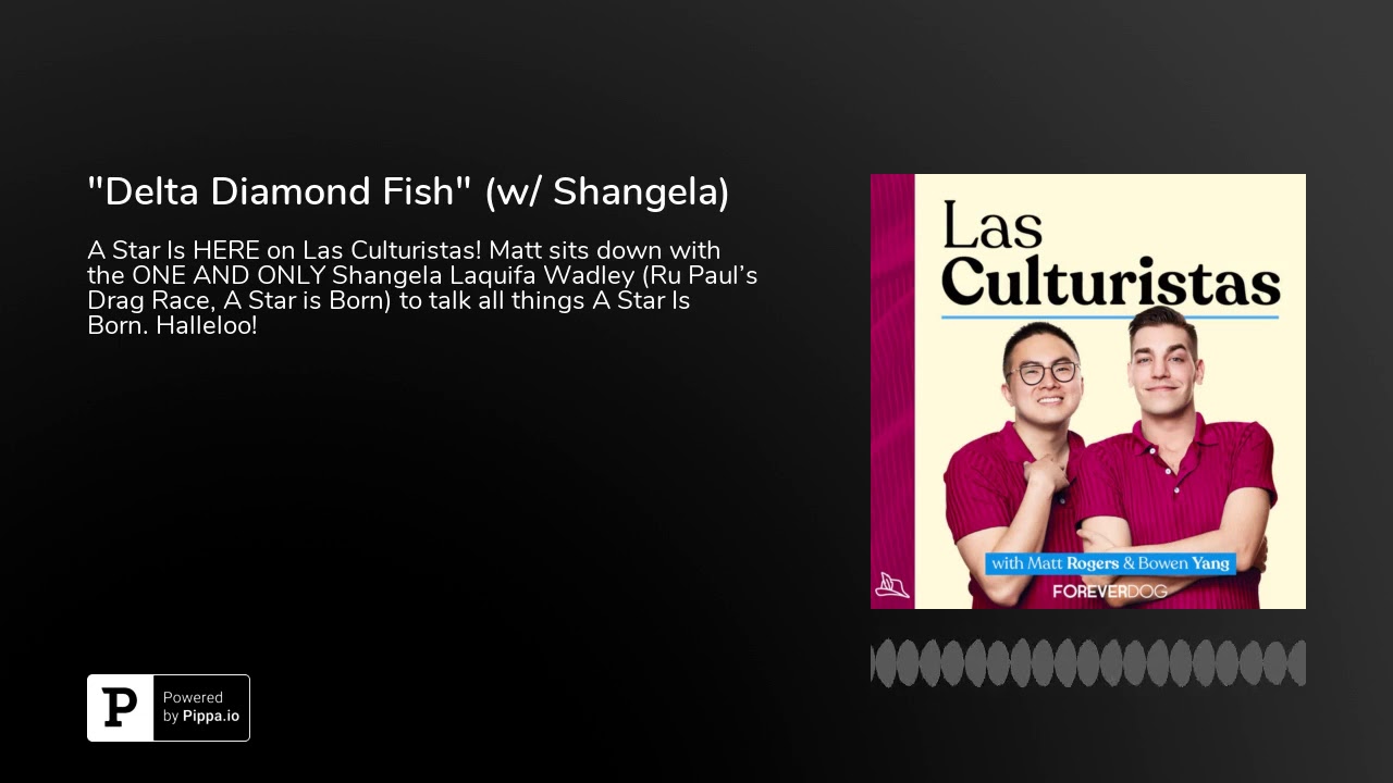 A Star Is HERE on Las Culturistas!Matt sits down with the ONE AND ONLY Shangela Laquifa Wadley (Ru Paul's Drag Race, A Star is Born) to talk all things A Star Is Born. Halleloo! Topics include: working with Bradley Cooper and Lady Gaga, hanging with Gaga at Soho House in London, comebacks, breaking bones onstage, loving yourself, and so much more! Plus, Shangela reveals her plan to become the first drag queen to perform on all 7 continents. Antartica, get ready for Shangela's Happy Feet number! ---MERCH! MERCH! GET YOUR LAS CULTURISTAS MERCH!